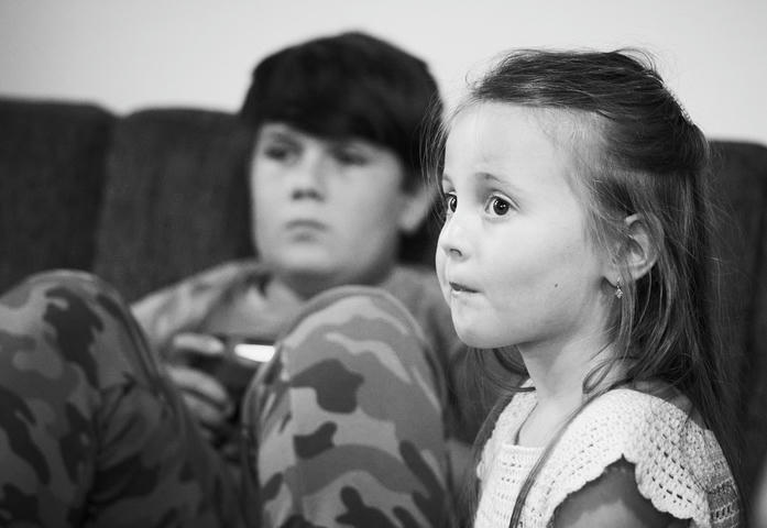 \nDětičky (Stepa a Bety) si doma hrají s dětskou disko-kouličkou.