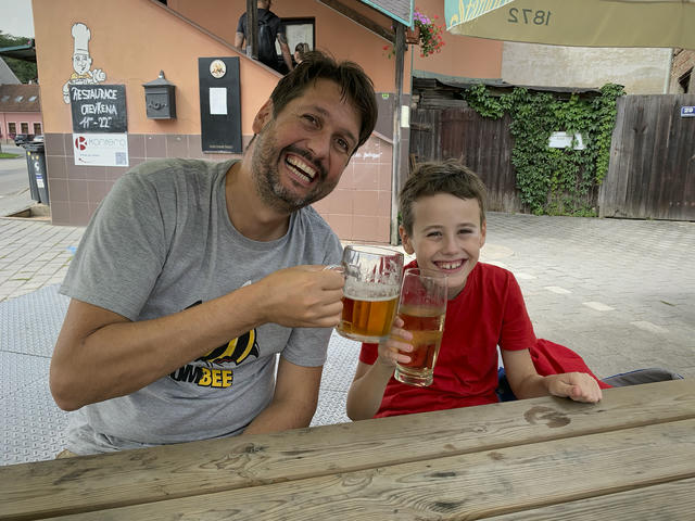 \nAlda a Stepa byli na závodech. Jeli jsme autobusem a nakonec jsme se odměnili U Čápa.