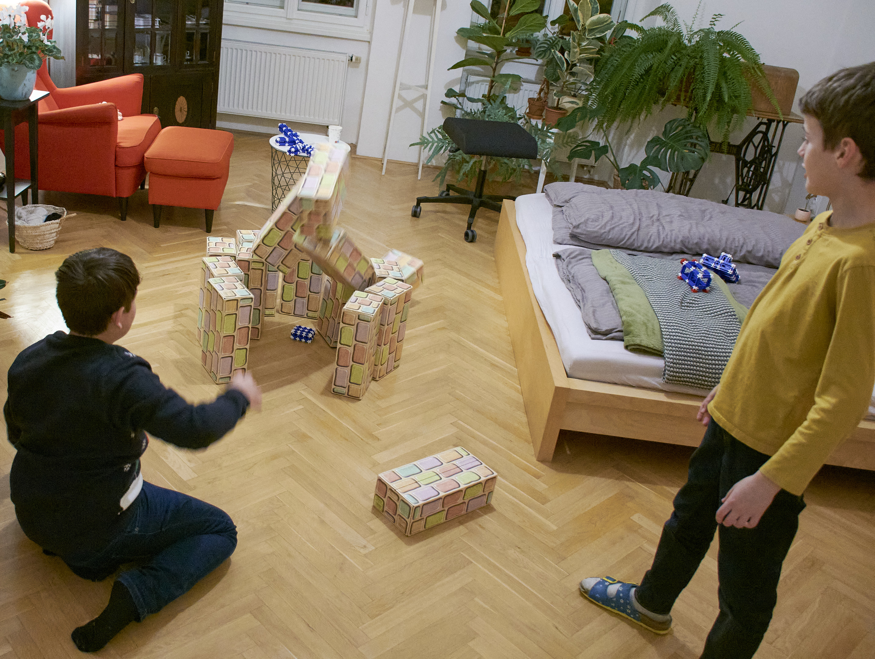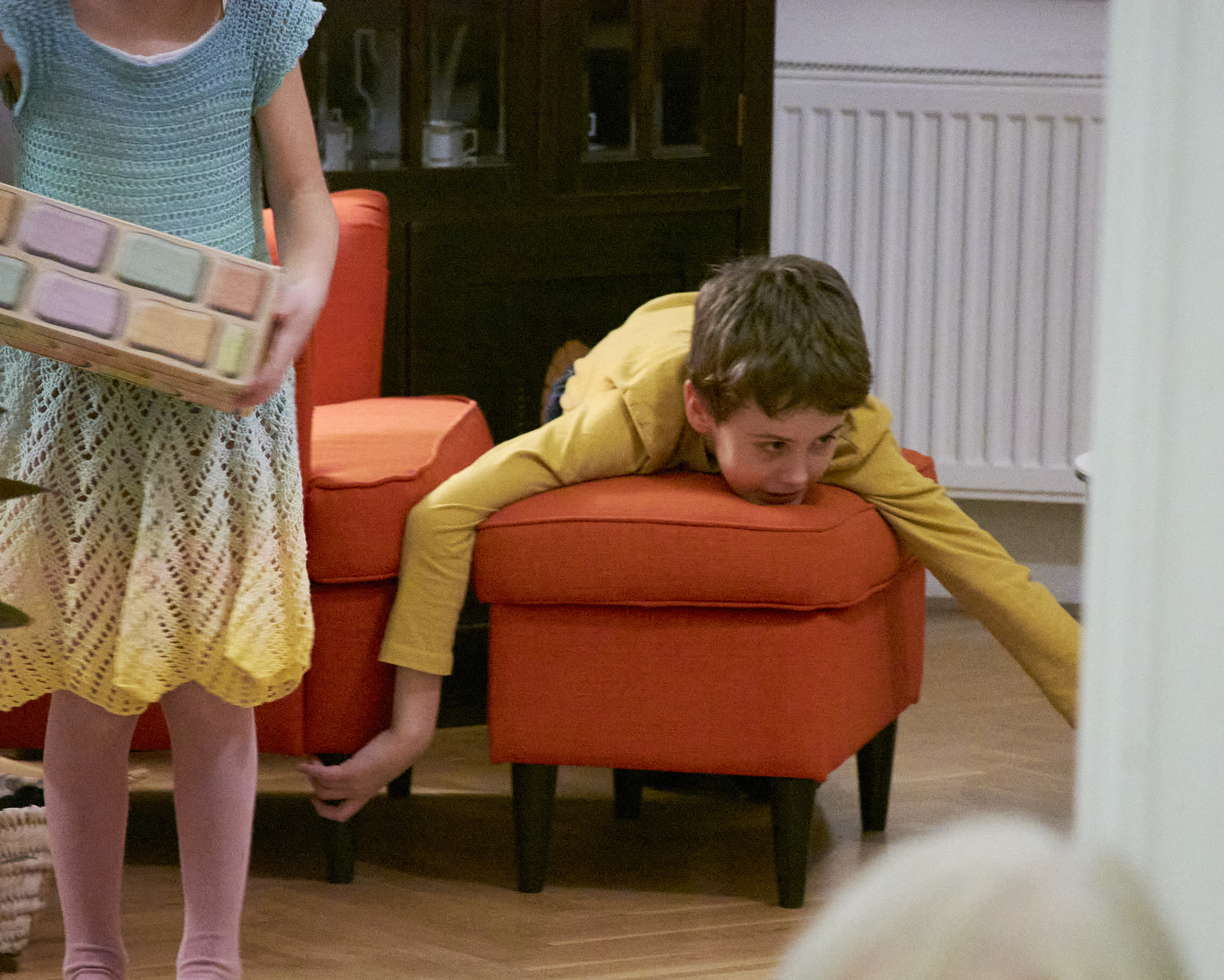 \nDnes děti v challenge pokračovali, jen s dodatečným pravidly: nikdo nesedí na svém místě a věci ze včera jsou zakázány… 🫣