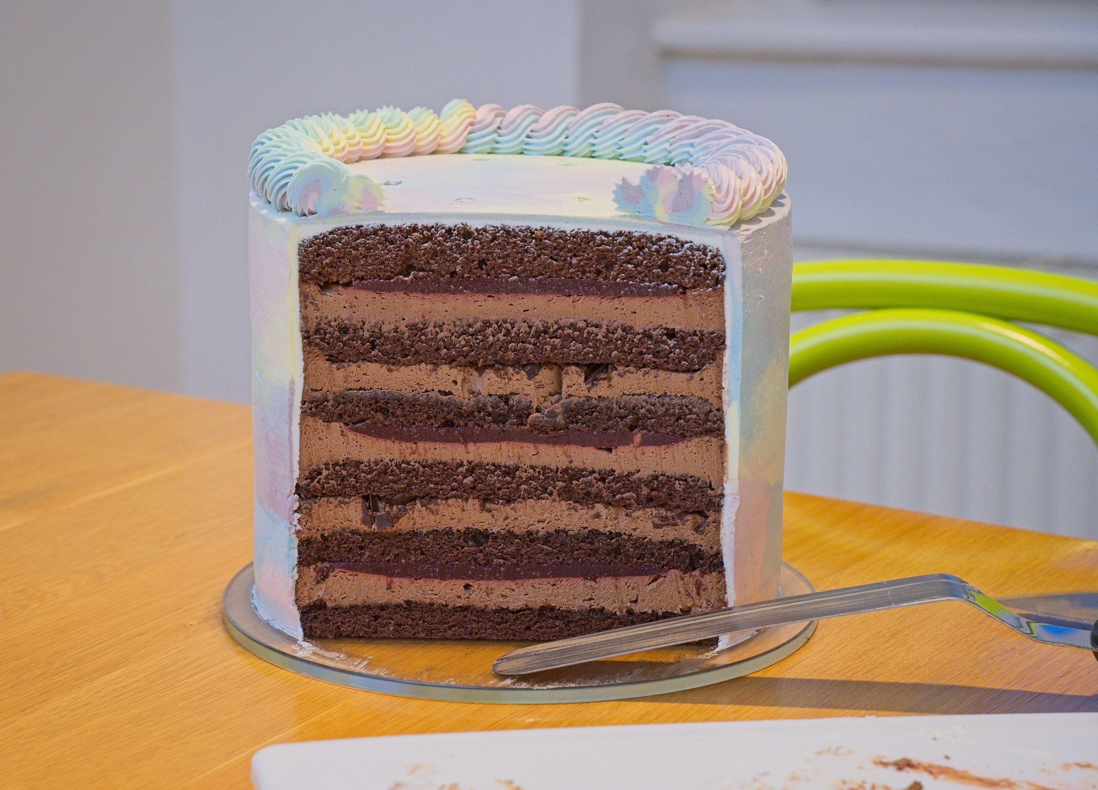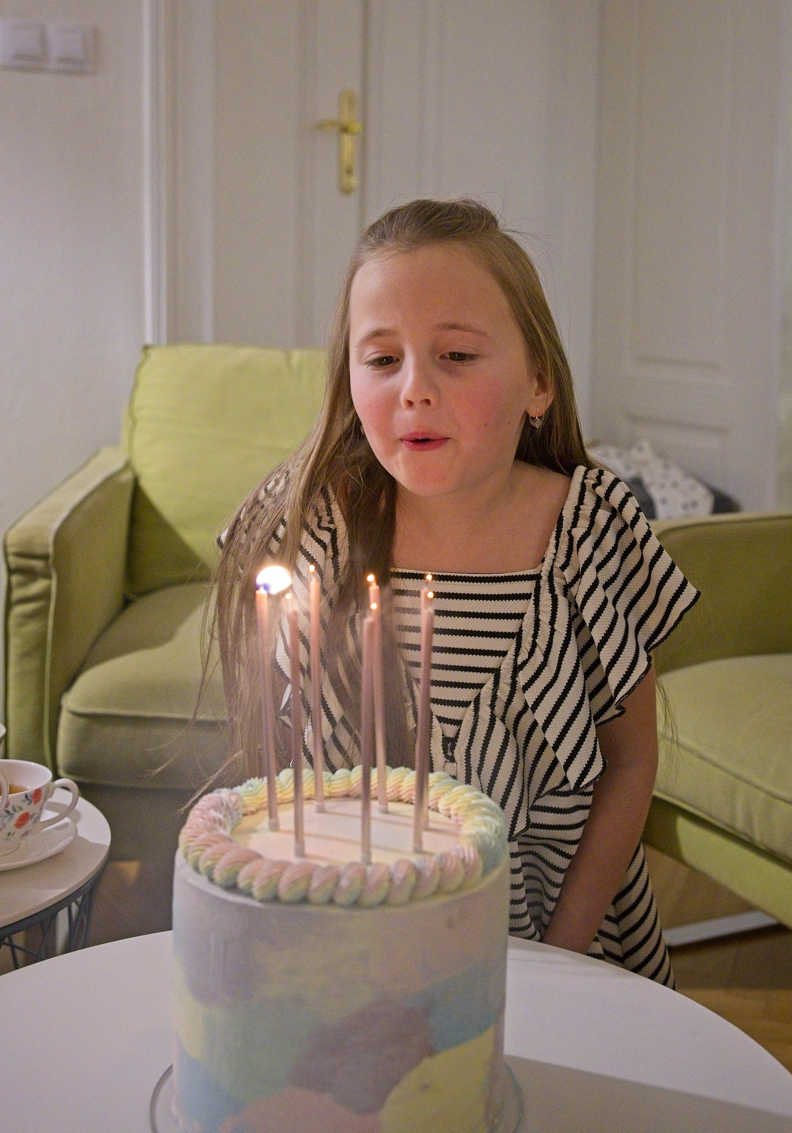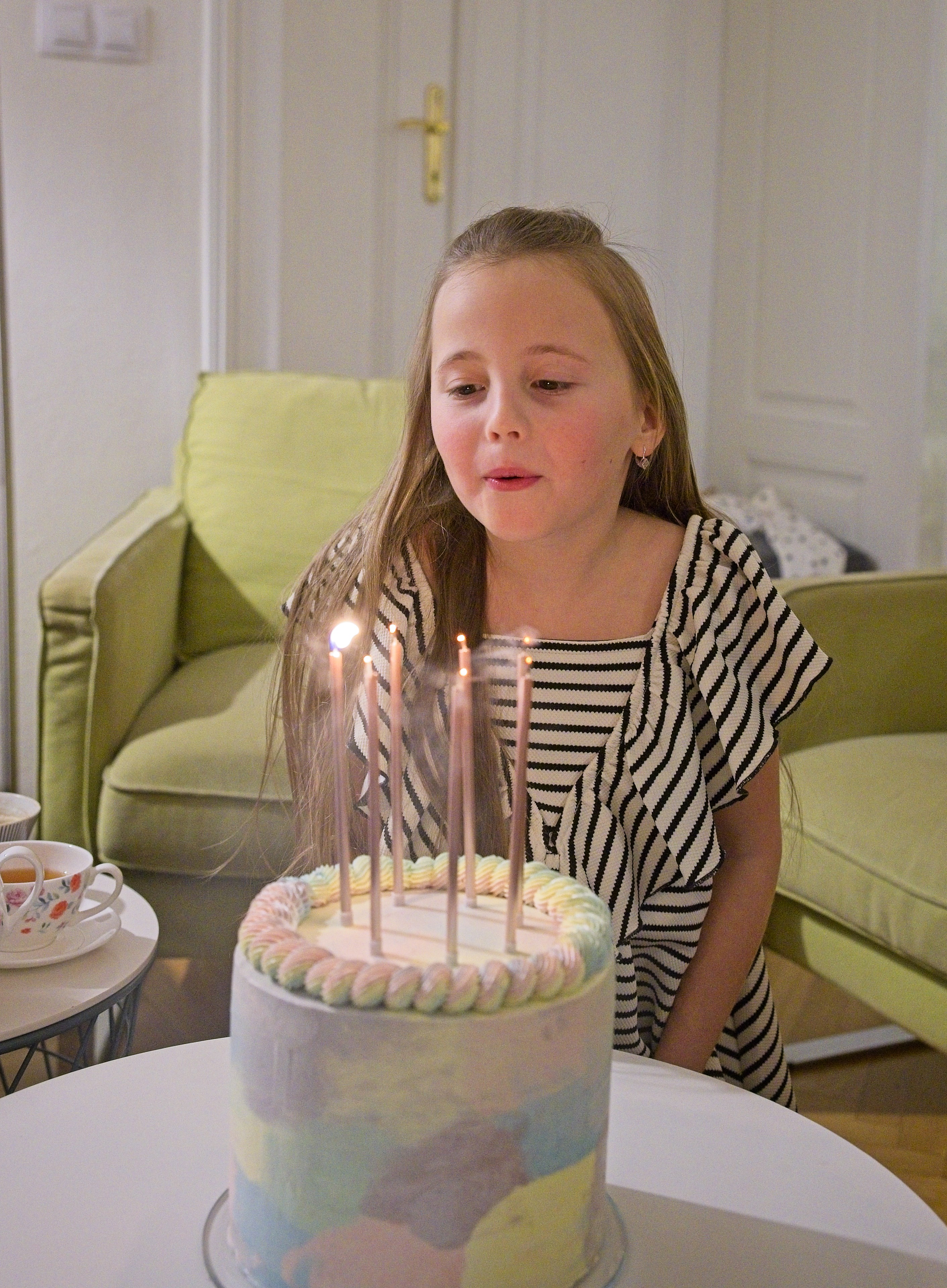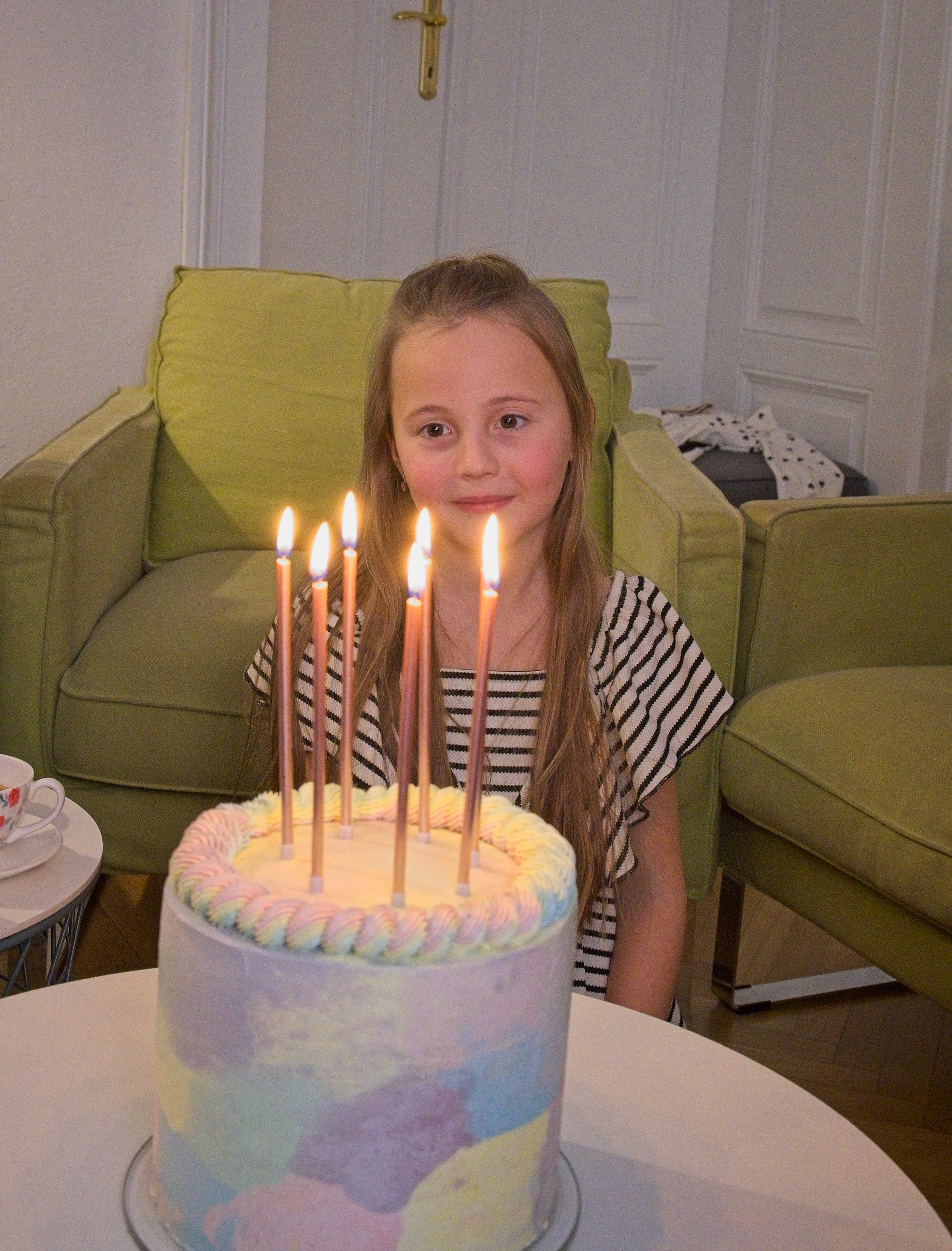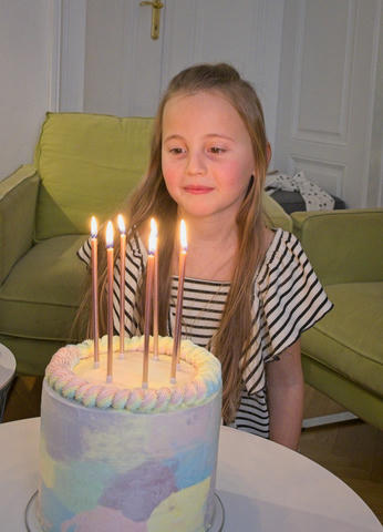 Bety slaví 7 let s duhovým dortem. Od Štěpíka dostala vlastnoručně vyrobenou knihu kouzel.